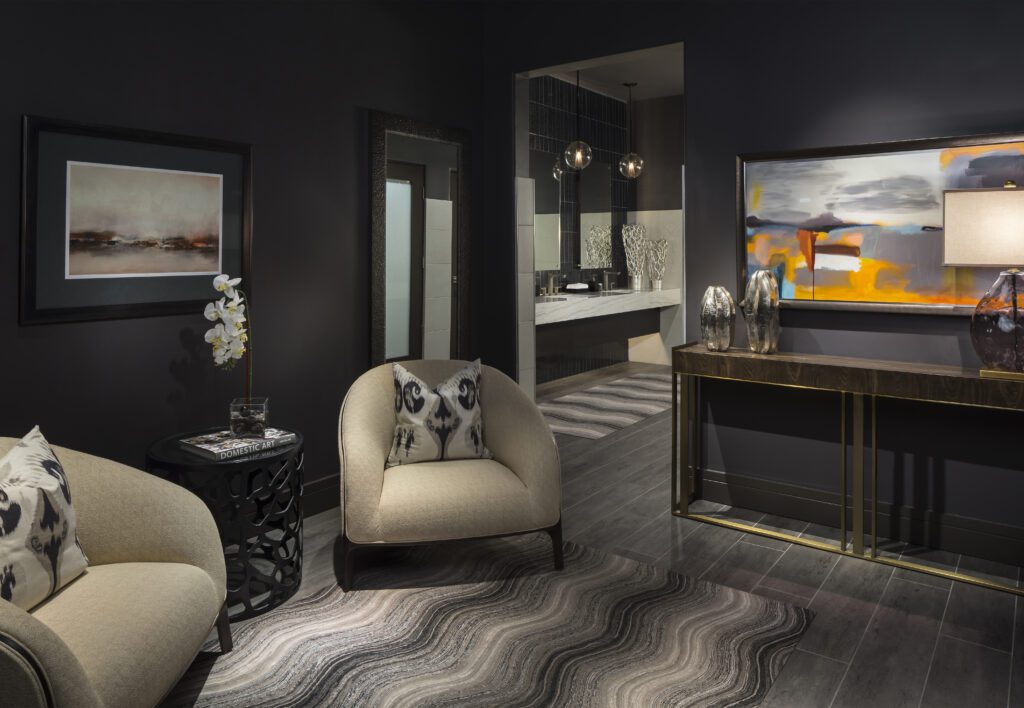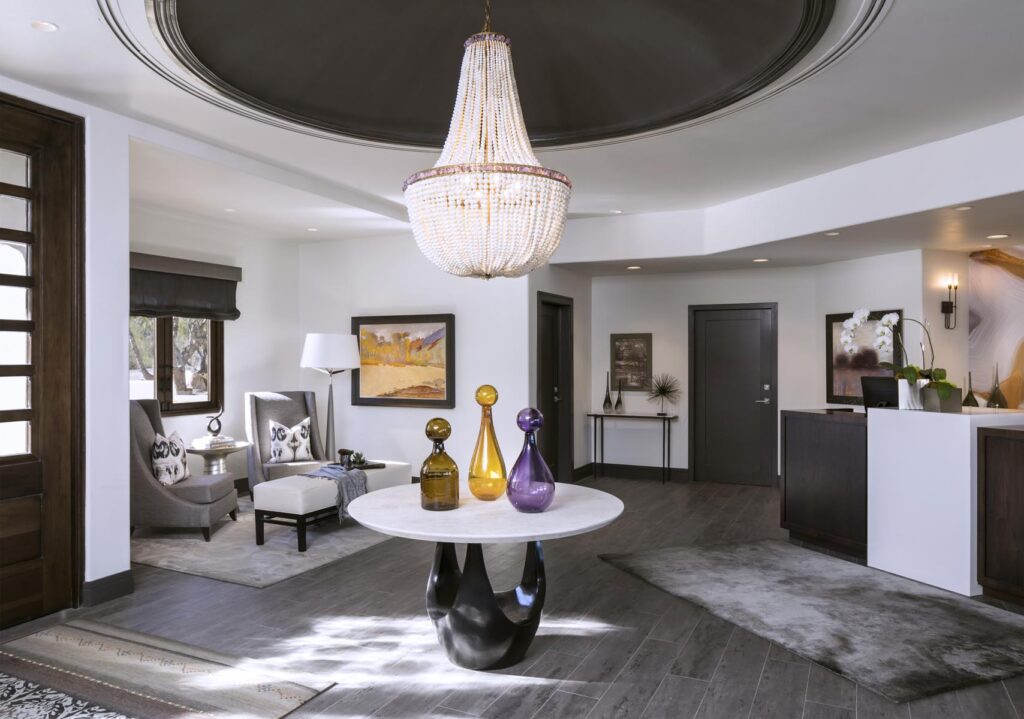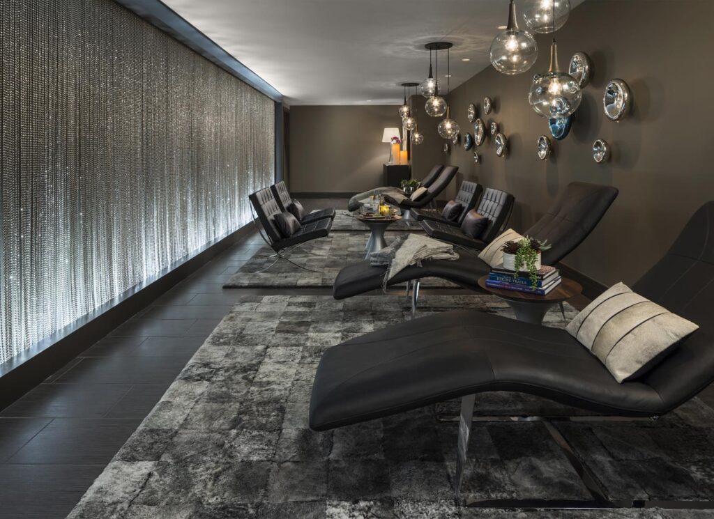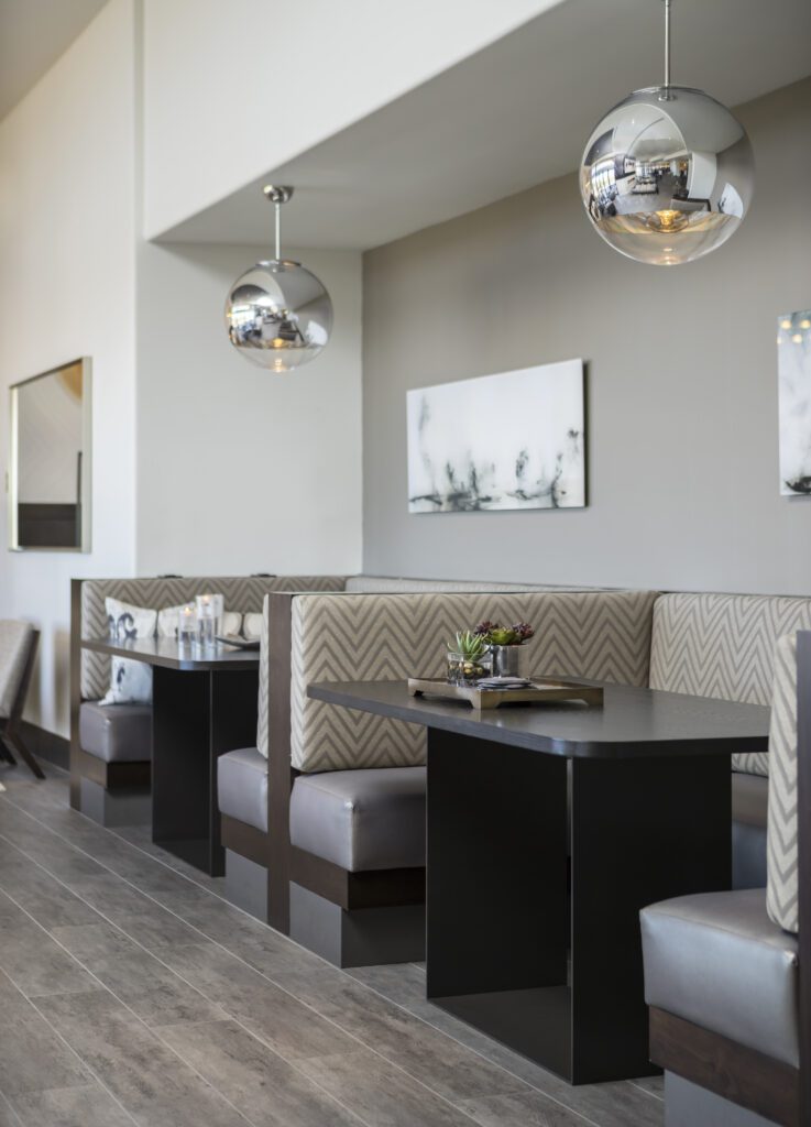 From the hand selected one-of-a-kind walnut high top tables in the restaurant to the fully custom geode-inspired wall covering in the lounge, working with talented artisans brought a sense of sophistication that extended to every room within the space, inviting each guest who came through the door to elevate their expectations.